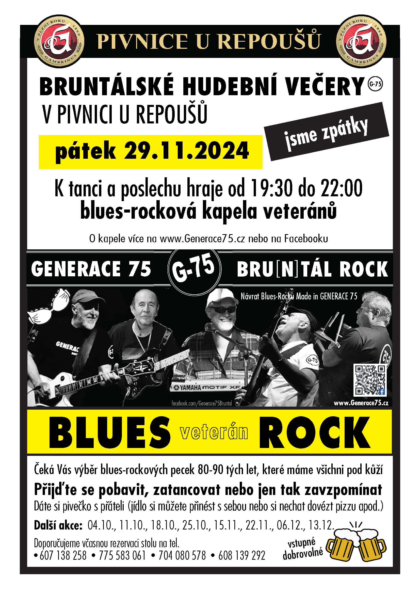 Kde: Bruntál, Pivovar HASIČ Kdy: sobota v 20:00 Akce: Blues-rocková Svatomartinská husa Plakát: ZDE |